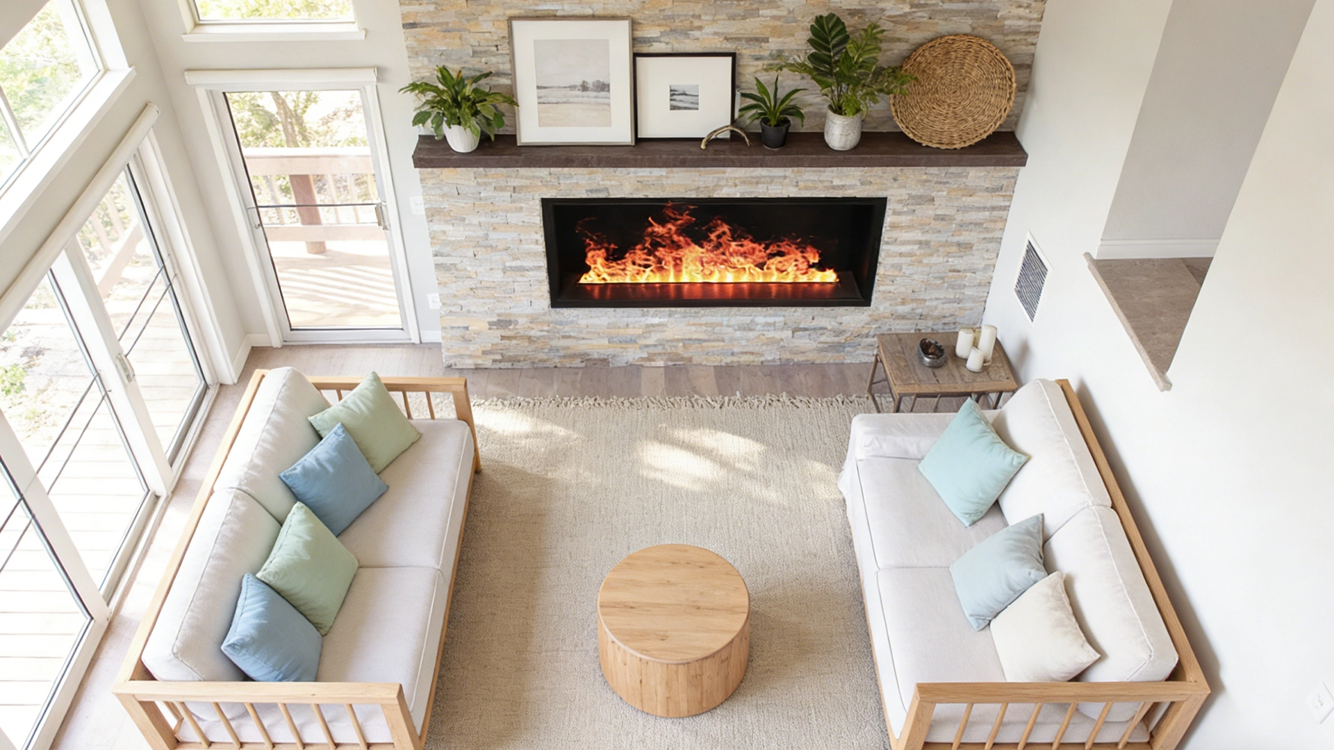 - Realistic 3D Flames: Uses advanced water vapor technology to create dynamic, lifelike flames that mimic the appearance of a real fire, without smoke, soot, or open flames.