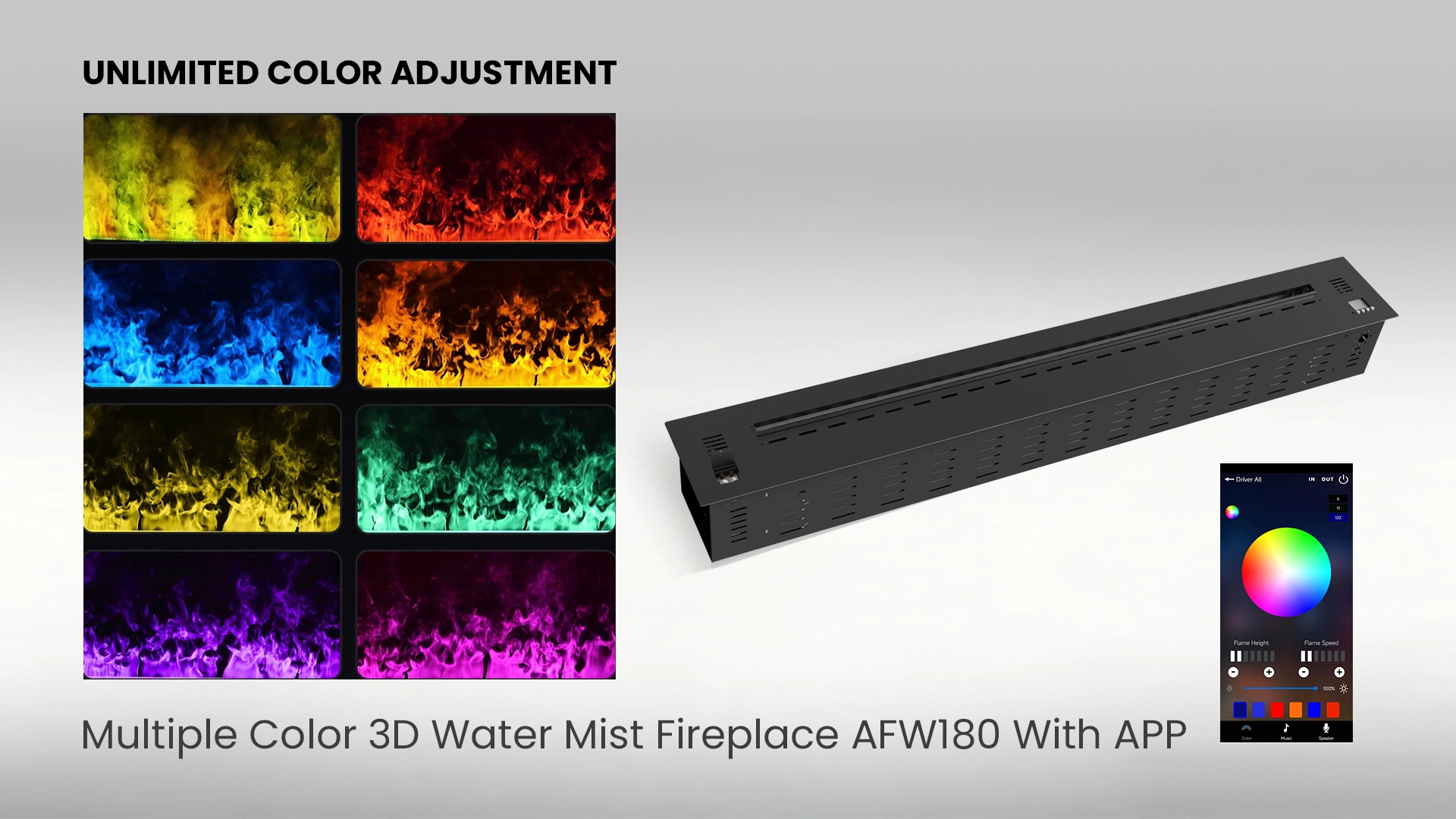 Modern Multi Color 3D Vapor Fireplace with Smart App AFW180