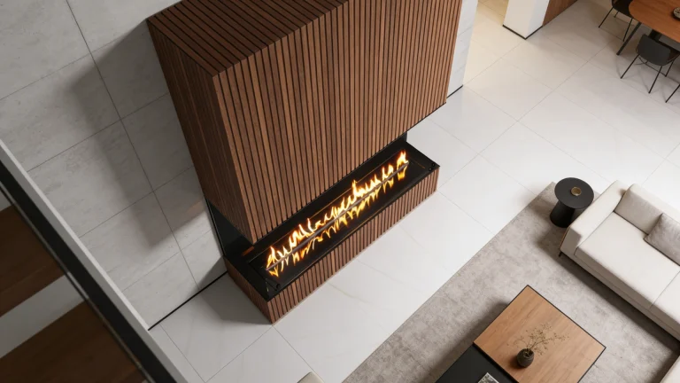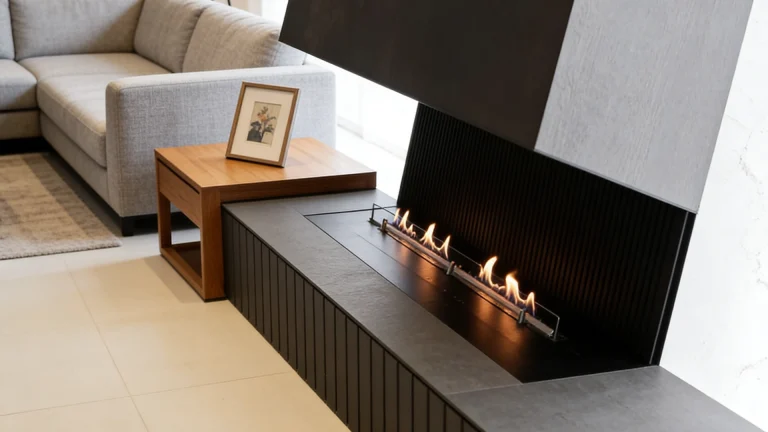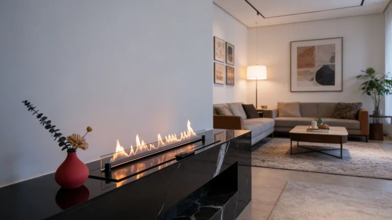 A sleek, vent-free ethanol fireplace that brings cozy warmth and modern ambiance to any indoor space, no chimney required.